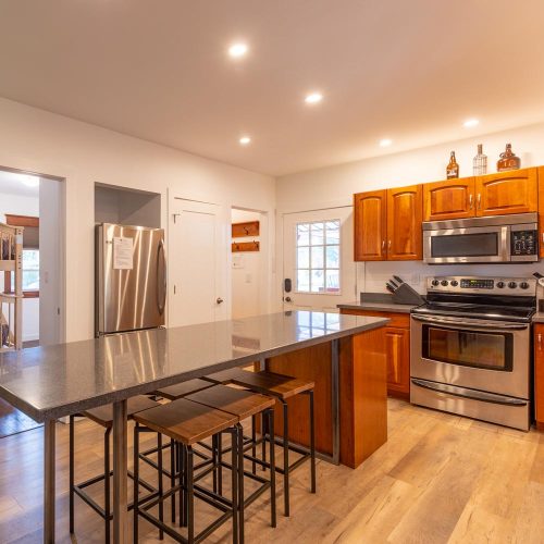 The Huckleberry Lodge offers four bright bedrooms, two cozy living room nooks, a large mud room for all of your summer and winter sports gear, and a private backyard matched with a relaxing veranda. Whether you’re thinking about a week-long getaway or just an exciting weekend away, the Huckleberry Lodge is the perfect place to be!